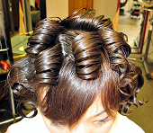 ロットは、ボリュームを与えたり、髪全体にクッキリしたカールを付けたり、毛先を軽やかに飛ばすなどの能力に優れます。その効果を利用すると、華麗で軽やかな作品作りを得ることが可能になります。もちろん基本調整の有無が条件となりますが、ロットはピンパームほどの練習量はなくてもかかるからです。