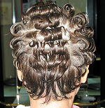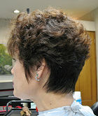 頭頂部に躍動的な動きを求め、その強さを徐々に弱くして、下部の直毛部と違和感なくつなぐ強さ調整を、強さの段階的調整(グラデーション化)と言います。そんな調整を用いた作品なのですが、巻き方もロットアウトも通常の方法で行い、面倒な作業は一切行わず調整は終わります。そのため躍動感と直毛が、違和感なくつながるのです。