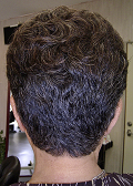 パーマ後、ドライヤーで水気を飛ばし無造作に手グシで仕上げた形です。このようなエリ足の処理を行うと、首筋がスッキリとシャープになりメリハリ感のあるスタイリングとなります。また、エリ足の浮き上がりを抑え、フィットさせる実用的な効果も有します。アイディア次第で応用幅は広いのですが、これもピンパームの能力を活かす基本技術の一つとなります。