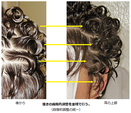 もちろんこの調整には美容師の技量が必要で、道具を変えるだけでは得ることができません。そのため道具扱いに不備があったり、調整に曖昧さがあるとパーマ部と直毛部のつながりに支障が出て、それを直す余分な作業が必要になります。
