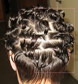 なお、この写真の段階的調整が一番多用される基本形であり、美容師が体得しなければならない基本技術の一つとなります。