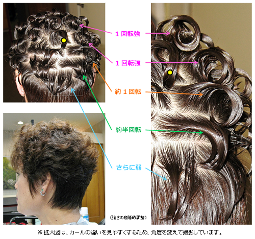 この作品に使用した主なパーマの調整内容。